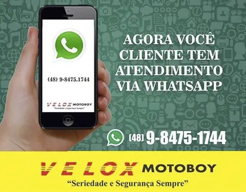 Clique aqui para enviar uma mensagem pelo whatsapp para empresa Velox Motoboy (48) 98475 - 1744